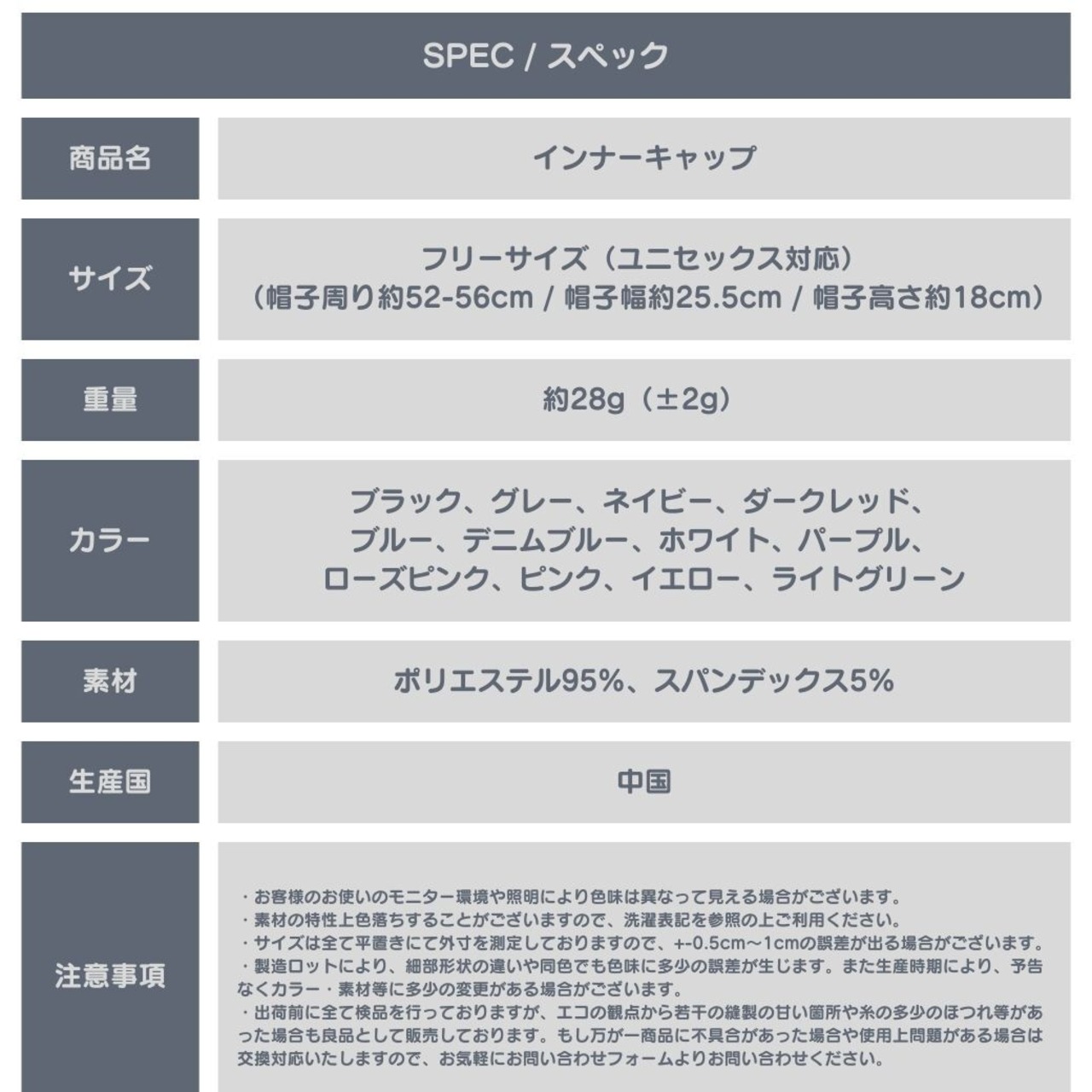 商品名 :インナーキャップ