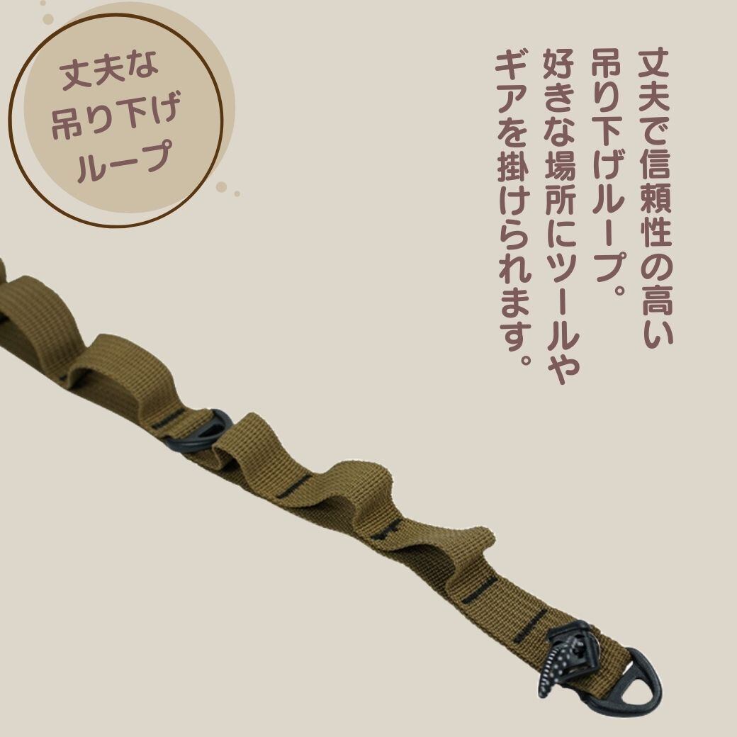 キャンプや防災時に役立つMOLLEシステムを採用。さまざまな小物をすっきりと収納し、持ち運びが楽になります。出先での荷物管理がこれ一つで解決!