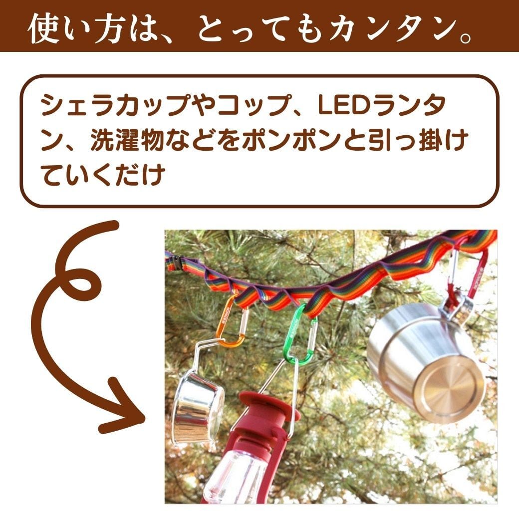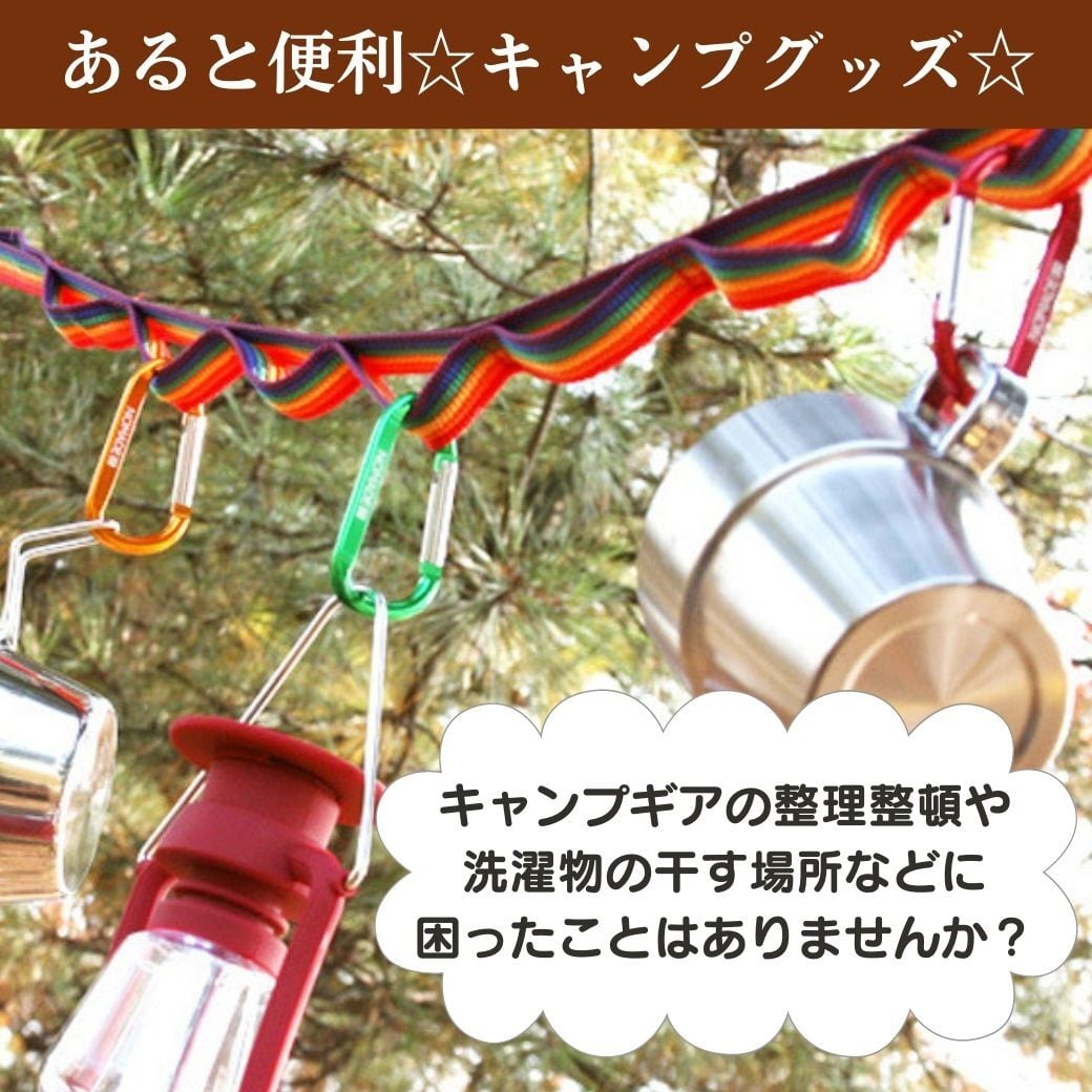 ✅フックやカラビナつけてシェラカップやクッカーなどの調理道具やランタンなどをつるして収納できる便利なキャンプの収納アイテムとしてはもちろん、洗濯物の乾燥にも便利。ごちゃごちゃしたテント内での紛失防止にも。