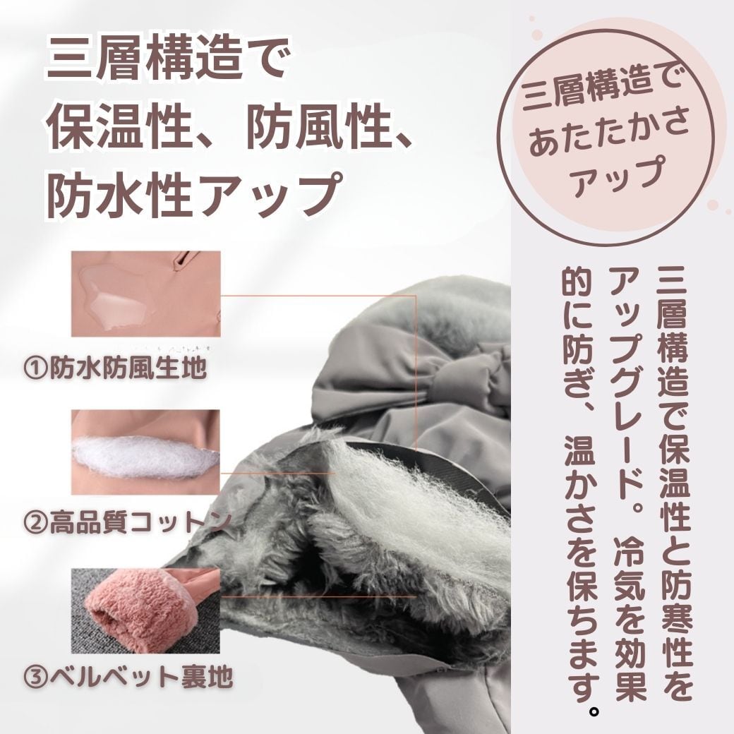 外側は防水防風生地、中間層には高品質のサーマルコットン、内側には暖かいベルベット裏地を採用。この三層構造により、冬の厳しい寒さから手を守ります。
