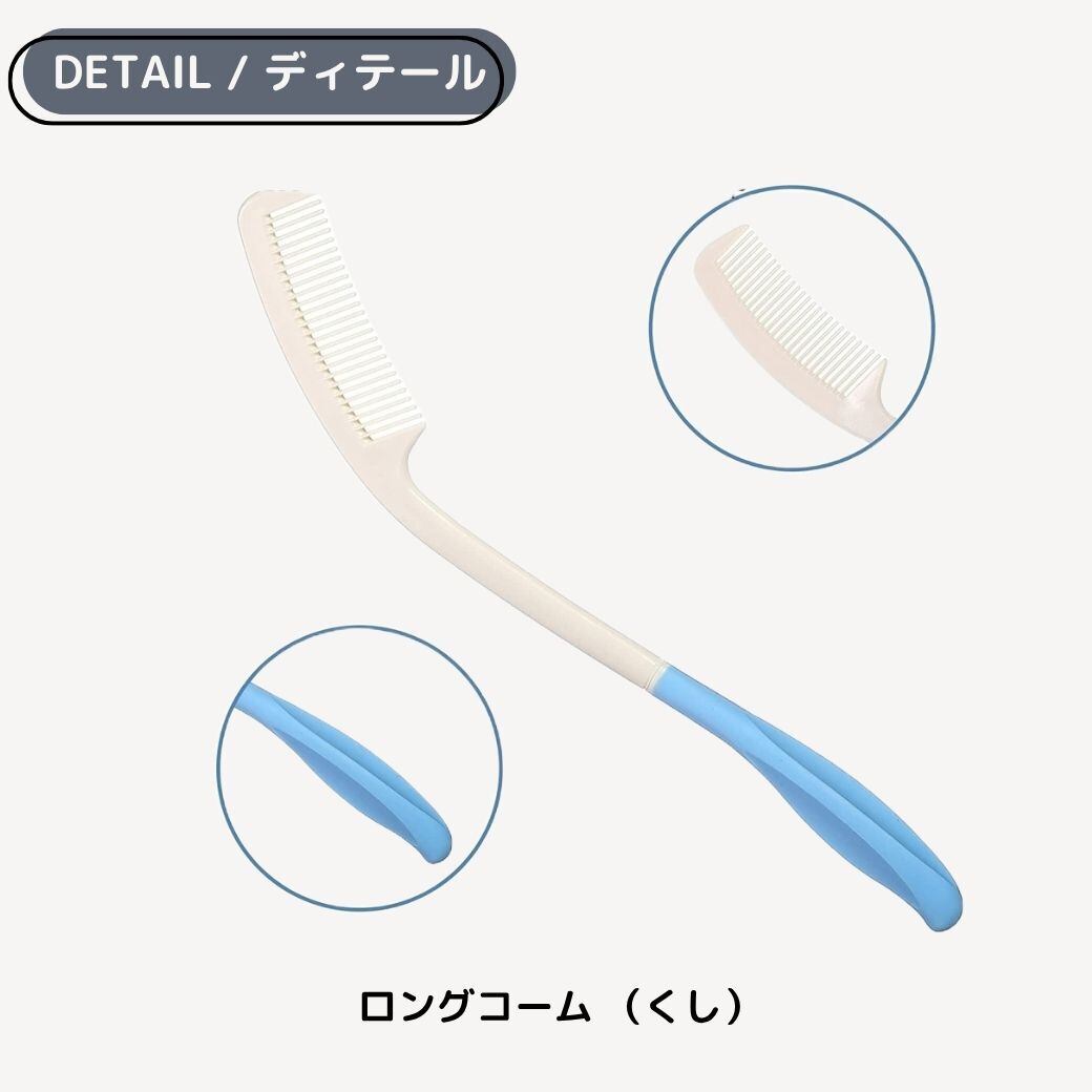 ✅ 本商品は、介護用や妊婦向けに設計されたロングハンドルのくしとブラシがセットになっています。後頭部や肩に負担をかけることなく、自分で簡単にヘアセットが楽しめます。