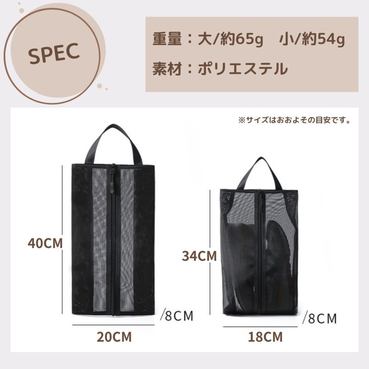 >>>収納用メッシュケース Lサイズ(大)は別ページになります。