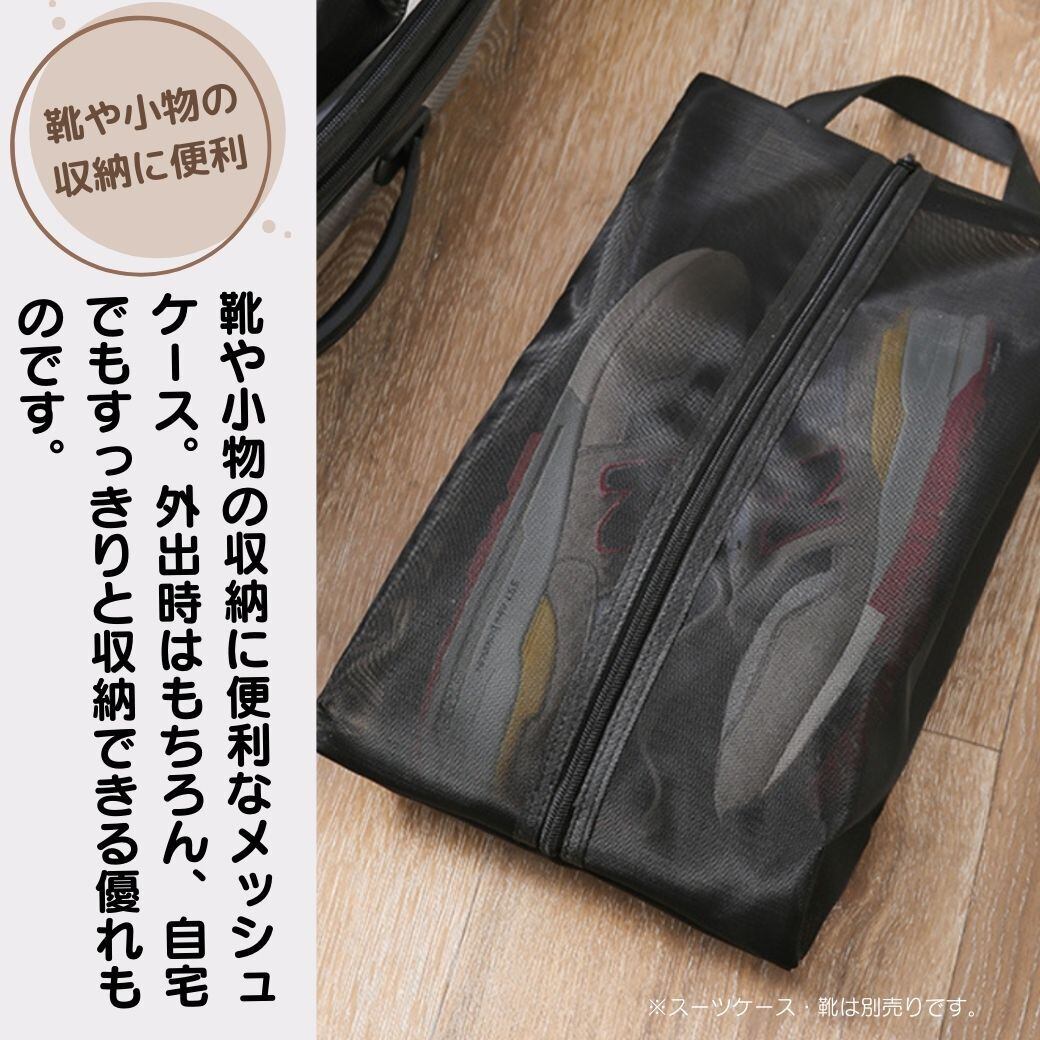 靴や小物の収納に便利なメッシュケース。外出時はもちろん、自宅でもすっきりと収納できる優れものです。
