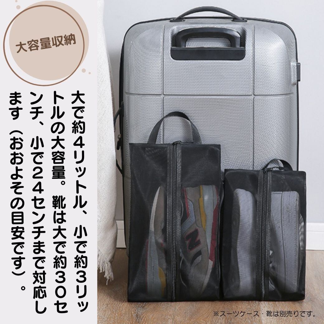 大で約4リットル、小で約3リットルの大容量。靴は大で約30センチ、小で24センチまで対応します(おおよその目安です)。