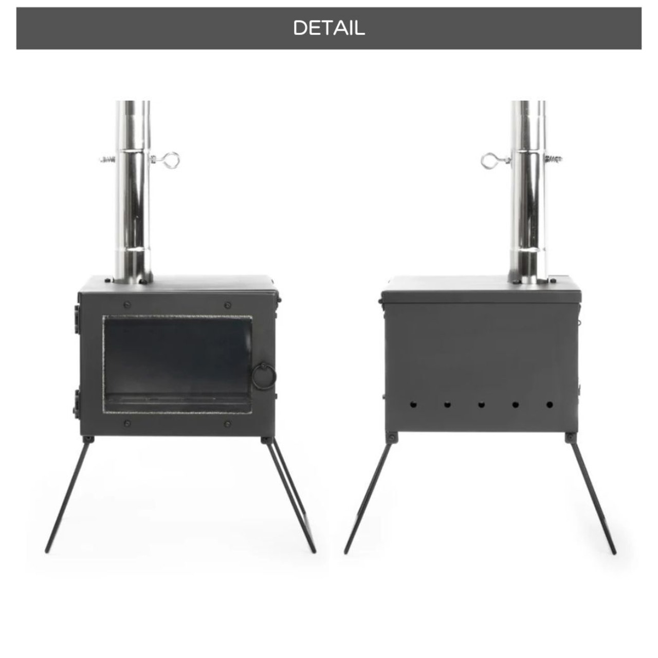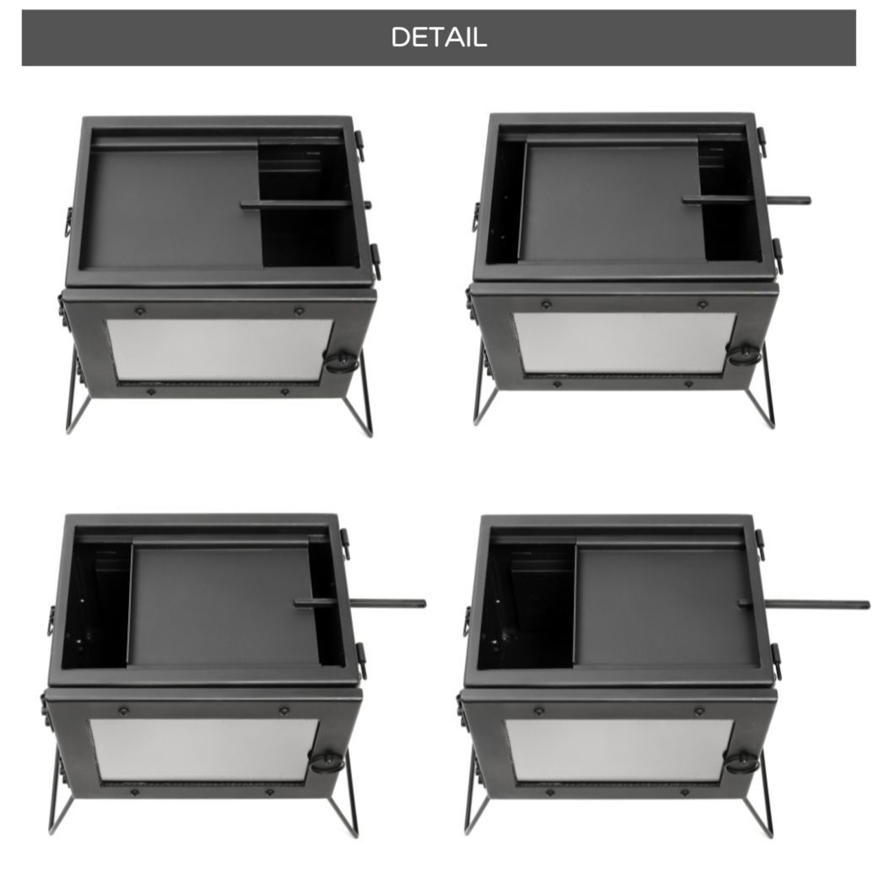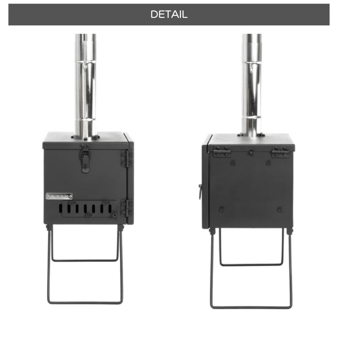全辺30cm以下・本体重量6.7kgとコンパクトで持ち運びやすく、焚き火台とグリルの機能を兼ね備えた二次燃焼薪ストーブです。