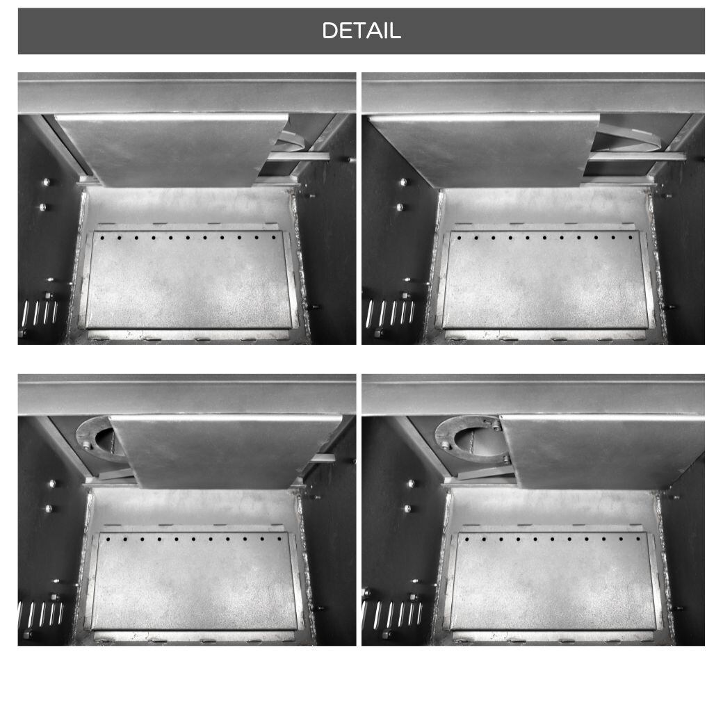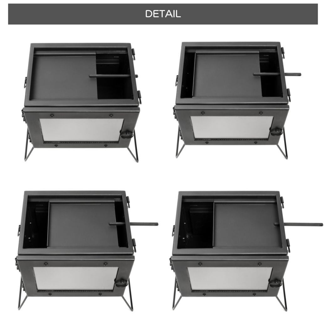 火力をコントロールしやすい可動式バッフルと、空気の流れを調整できるダンパー付き煙突を標準装備。