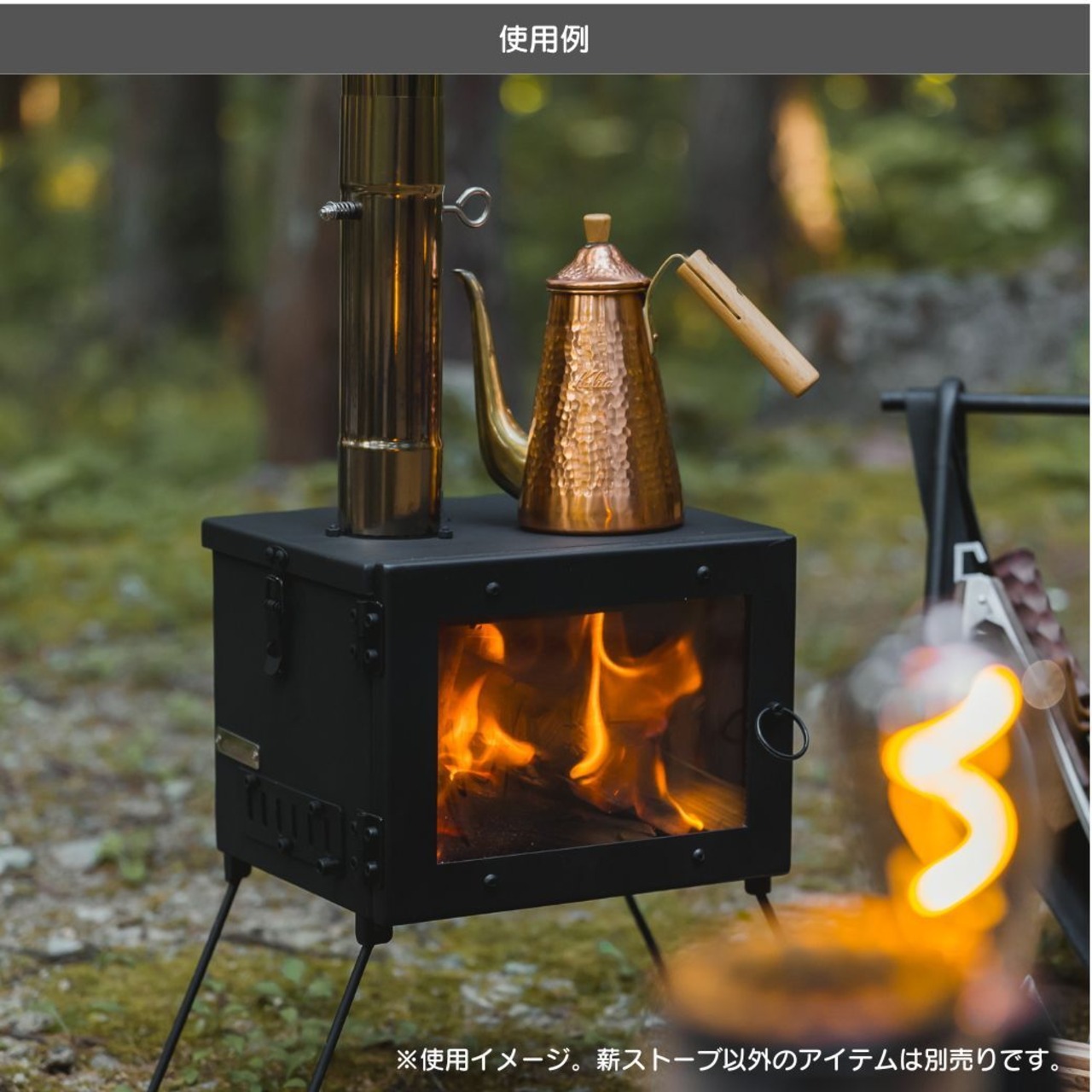 コンパクトな本体サイズながら、燃焼室全体の炎を広々と眺められる設計で、焚き火のような臨場感を演出。