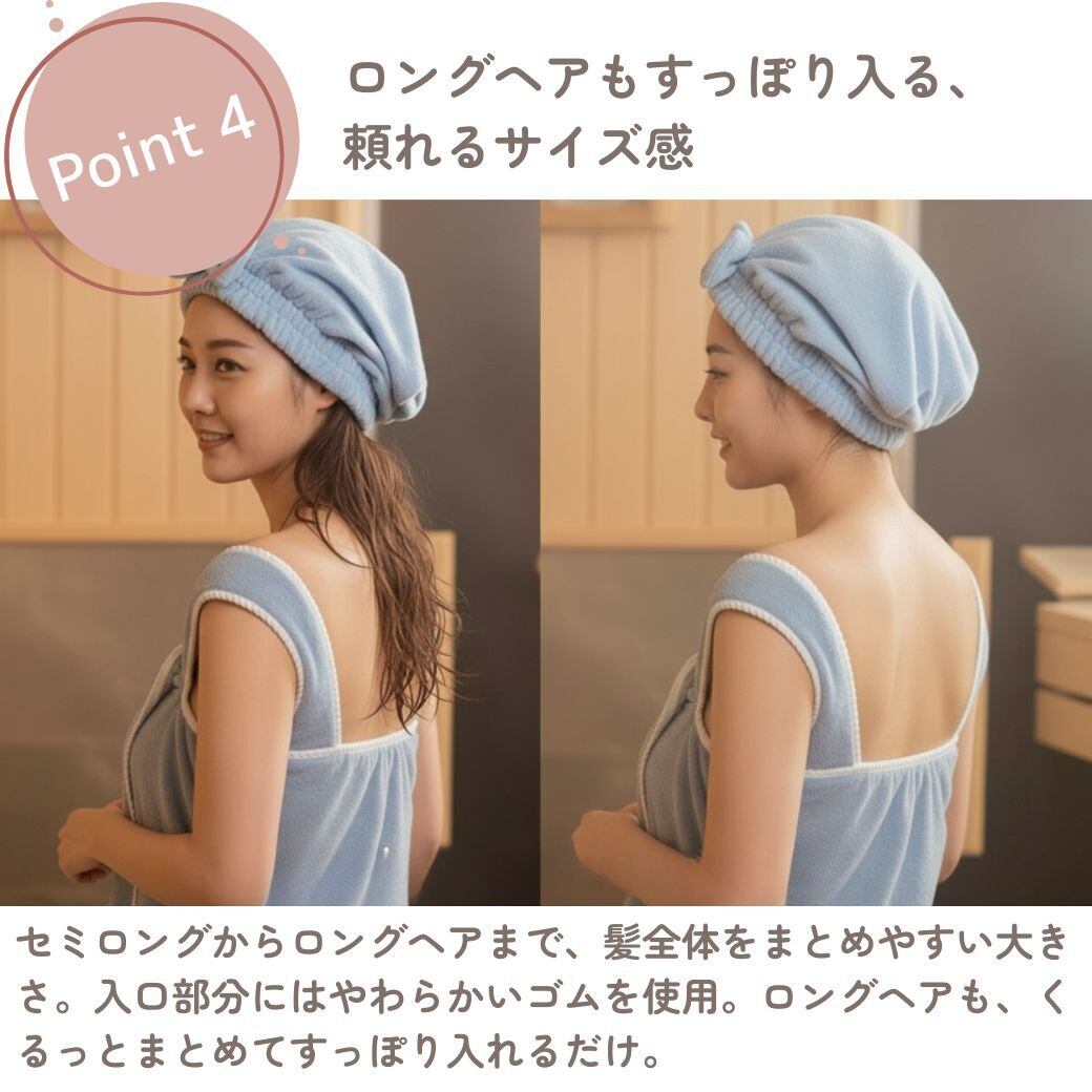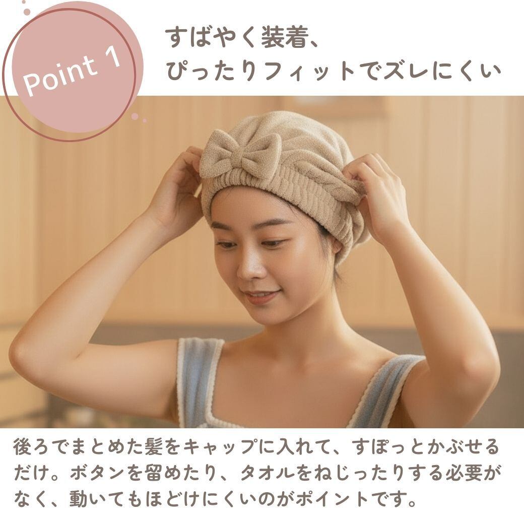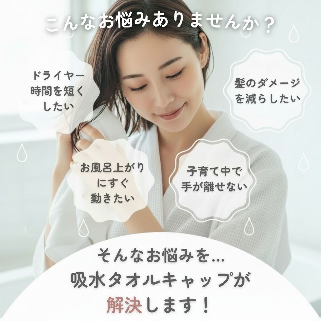 「被るだけで超吸水」タオルキャップで、まとめて解消。