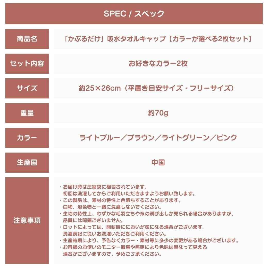 商品名:「かぶるだけ」吸水タオルキャップ【カラーが選べる2枚セット】