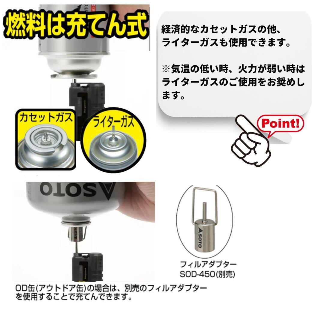 使用燃料 :CB缶、ライター用ガス(フィルアダプターSOD-450(別売り)を使用すればOD缶も可能)