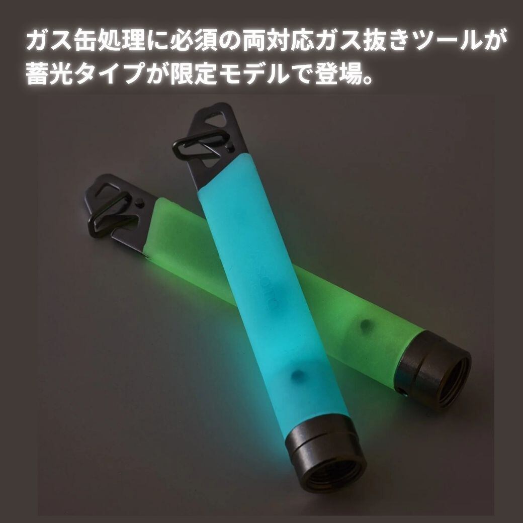 ガス缶処理に必須の両対応ガス抜きツールが蓄光タイプが限定モデルで登場。